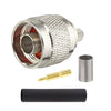 Conector N Macho de crimpado para instalaciones de comunicación RF, ofreciendo una conexión segura, estable y de baja pérdida. Diseñado para cables coaxiales RG8X, LMR240, CNT240, KMR240, Mini8 y 4D-FB, así como para Belden 9258, este conector es ampliamente utilizado en antenas, radios CB, radios de comunicación, enlaces RF y sistemas inalámbricos.